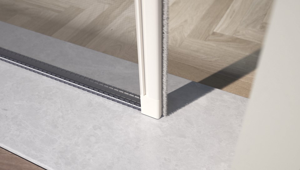 Luxaflex Rolhordeur Sencillo Deze elegante rolhordeur wordt op maat gemaakt. Uniek want stopt op elke gewenste positie. Aan onderzijde standaard voorzien van een zelfklevende aluminium geleidingsstrip van 3 mm hoog. Donkergrijze ketting voorzien van fluorescerende witte markering waardoor deze bij schemer beter opvalt. Door het vlakke gaas heeft men een kleiner pakket bij grotere breedte. Groot voordeel van het vlakke gaas t.o.v. Plissé gaas is minder vervuiling tussen het gaas.