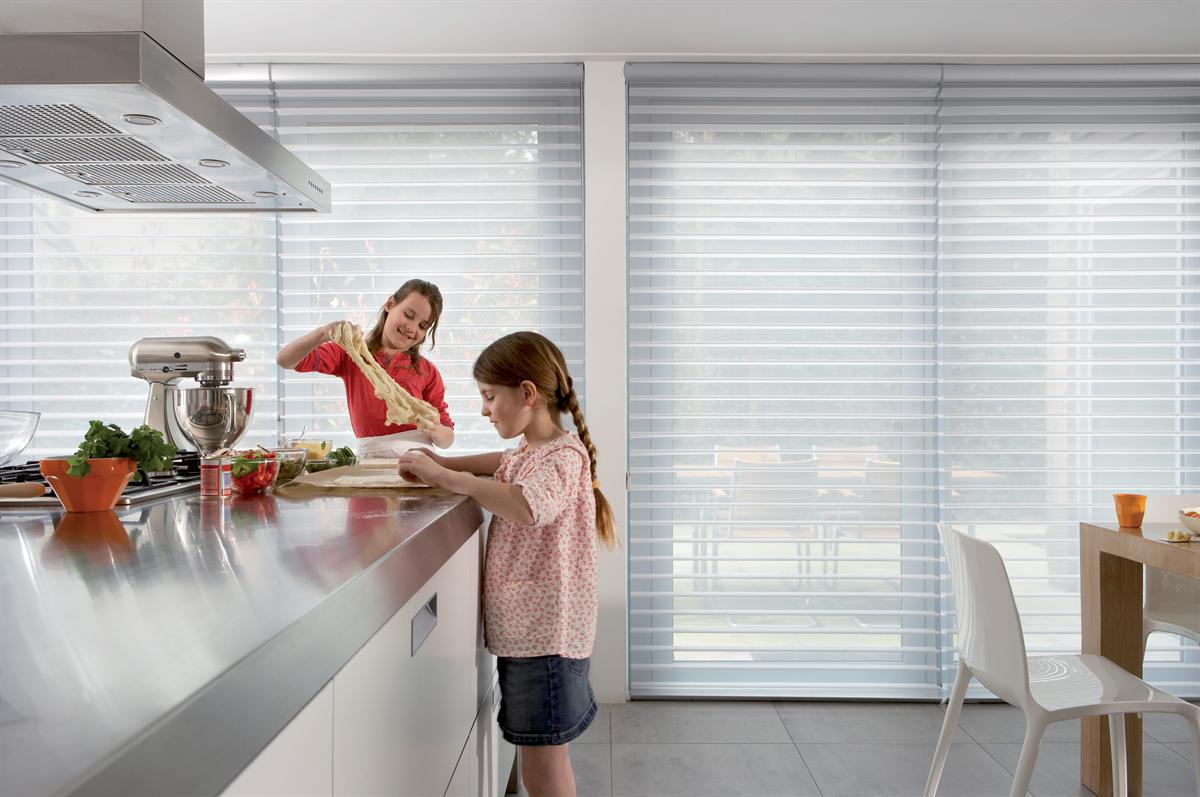 Door ingenieuze constructie van de Luxaflex Silhouette Shades kiest u voor zachte stoffen lamellen die lijken te zweven tussen doorschijnend voile. Met de Luxaflex Silhouette Shades kunt u het binnenvallende licht in uw huis subtiel doseren en de mate van privacy bepalen. Door de unieke, zacht ogende, doekconstructie voorkomt u een hinderlijk moiré effect (hinderlijk lijnenspel) waardoor u optimaal kunt genieten van een rustig doorzicht door de Luxaflex Silhouette Shades.